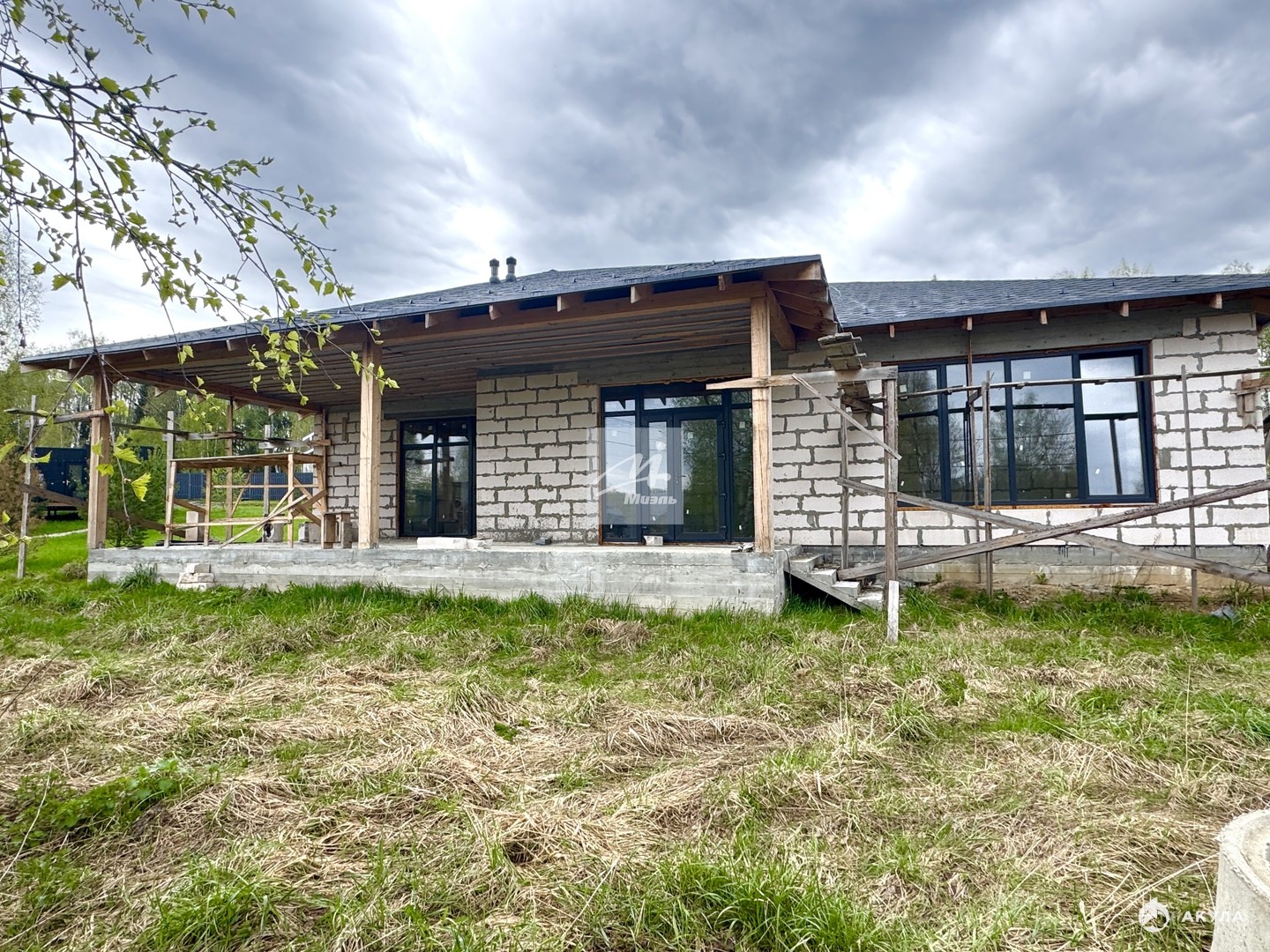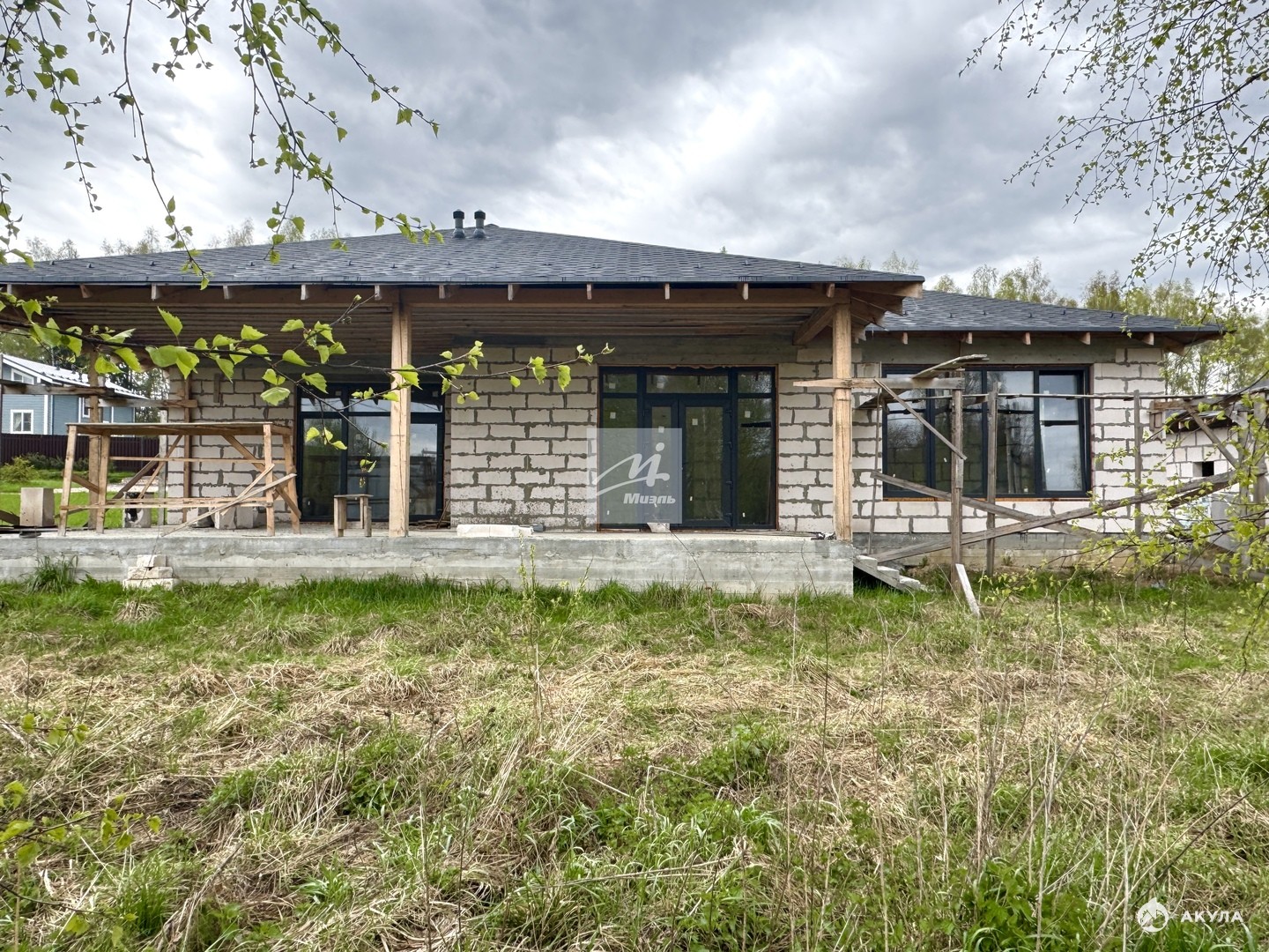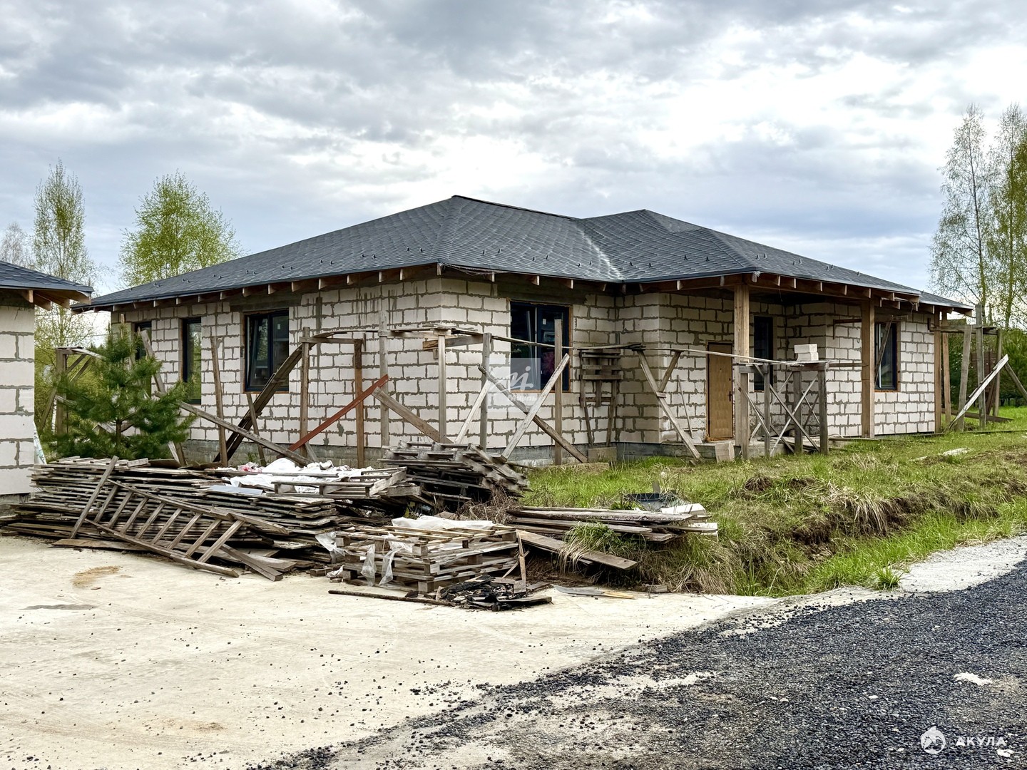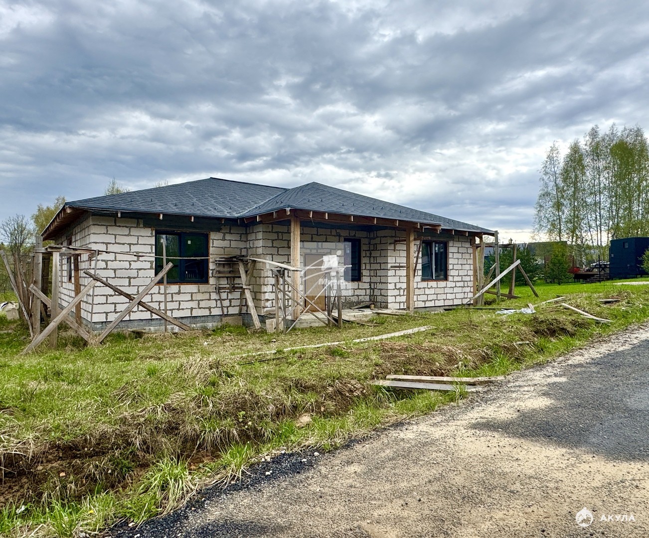 Гостевой дом 70 кв.м. стоит на монолитной плите, стены газоблок, крыша - мягкая кровля, будут установлены пластиковые окна.