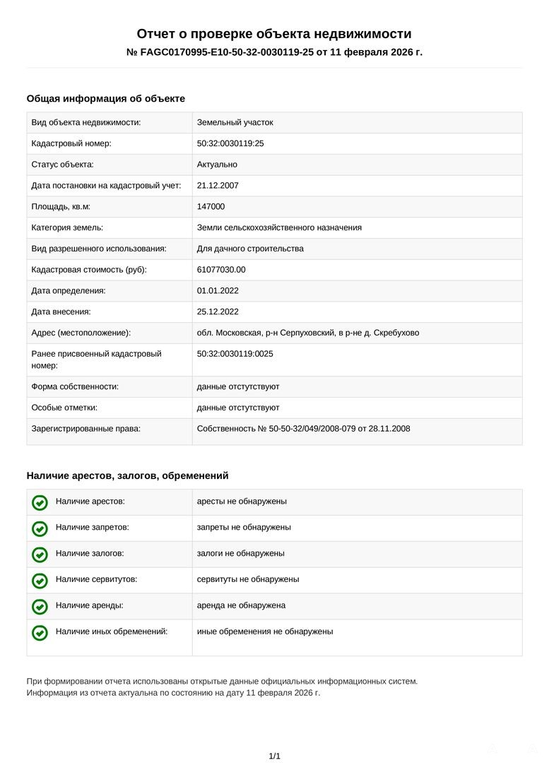 ID в ИМЛС: 20032662 Продам Участок площадью 14, 7 га ( г Серпухов, деревня Скребухово)